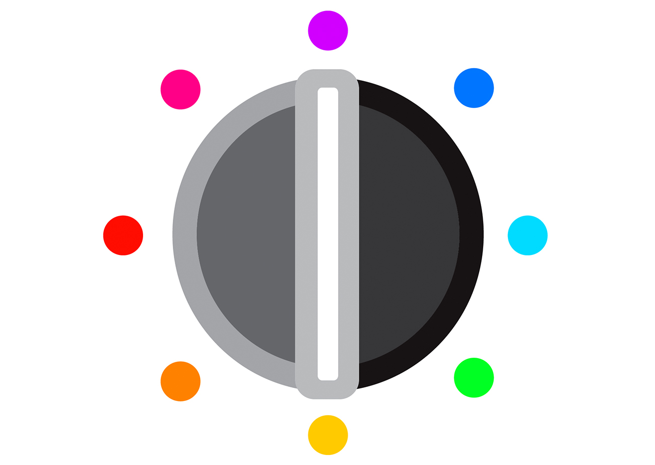 The dots surrounding the dial aren’t numbered like traditional channels, but rainbow-colored to signal a diverse set of sources; indeed, DoD covers tv, movies, music, and more. The palette also evokes a 70s/80s childhood awash in rainbows.